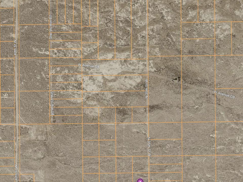 Square 2.5 acres NW of Lancaster, 3/4 of a mile south of Ave D, also known as Hwy 138. Zoned A 2, R L 2. Allows for heavy agricultural and or residential use. Residential density allowed is 1 home per 2 acres. Parcel is flat and easy to access; south on Ave D from 35th West. No utilities. Affordable ''spec'' acreage.