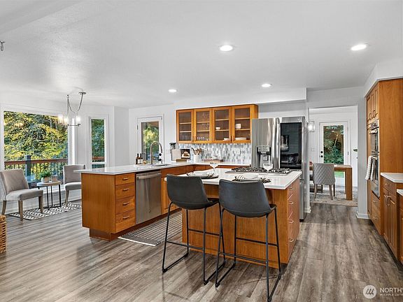 Serene PNW living in Blakely Ridge w/ sweeping views of the mountains & valley on nearly 5 acres! Inviting floor plan w/ open living & kitchen feat. ss-appliances, island seating, & walk-in pantry. Formal living & dining room w/ gas fireplace & exterior access. Spacious primary w/ 5pc bath & walk-in closet. Step outside to enjoy multiple expansive decks maximizing entertainment space & showcasing unobstructed views. Covered entertaining area w/ natural gas lines, fire-pit & expansive yard. Budding fruit-bearing orchard, ample driveway parking for RV/boat, & newer AC, heat pump & water heater for yr-round comfort. Easy access to I90/202 & just mins from DT Sammamish. A peaceful, private escape offering endless possibilities. Don't miss it!