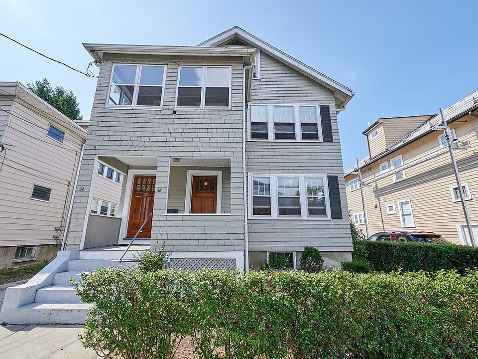 Conveniently situated on tree-lined side street between Waverley & Cushing Squares, this classic 1920's two-family is a wonderful opportunity for home ownership with income and/or investment property. First floor offers 4rms, 1br and 1bath. Features include lovely entry foyer with closet, walk-in kitchen pantry, gas stove, formal wainscoted dining room with built-in China cabinet, leaded glass windows, wood floors, wall sconces, ceiling fans, open front porch & roofed back porch. Second floor unit is on 2 levels with 7rms, 3brs, and 1.5baths, and features island kitchen with both pendant and recessed lighting, gas stove, in-unit laundry, ceiling fans, French door, enclosed front porch & enclosed rear porch. Full walk-out basement with additional washer & dryer (gas) hook-ups. Fenced backyard with 2 storage sheds. Excellent walkability...close to a variety of eateries, specialty shops, Star Market, parks, bus stop, commuter rail & so much more! Property is being sold "as is."