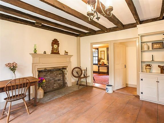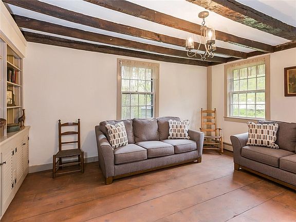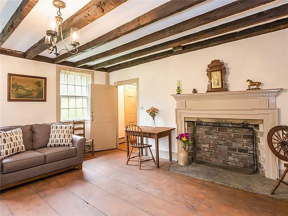 Center Chimney Cape immaculately restored and preserved. Modern integrity masterfully intertwined with beautiful period detail. Exceptional hardwoods, granite hearths, beehive oven, hand-carved kitchen cabinetry, all on 20 acres adjacent to the Foster Country Club. Includes two outbuildings - garage and barn.
