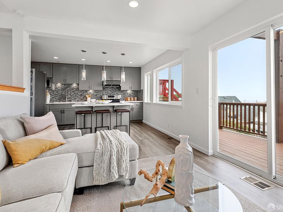 Charming Spanish Mediterranean style home with panoramic city and bay views! This thoughtfully designed 4-bedroom, 4-bath residence offers space, convenience, and comfort for multi-generational living. Key features include a remodeled kitchen with quartz countertop and island, stainless steel appliances, dual pane windows, laminate wood flooring throughout the main level, and brand-new carpet adding warmth and comfort in the generously sized bedrooms. Its versatile attic is transformed as an office & fun playroom, perfect for growing families. The lower level offers a large bedroom with walk-in closet, full bath, and kitchenette ideal for extended family or can be used for rental income. Enjoy stunning city views from its decks for relaxation or entertaining. Just a short stroll to the neighborhood park with basketball courts and conveniently close to schools, transit, shopping, restaurants and the vibrant Mission District. This unique home offers the best of urban living with the flexible space your family needs to grow!