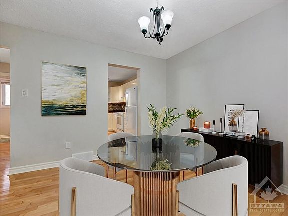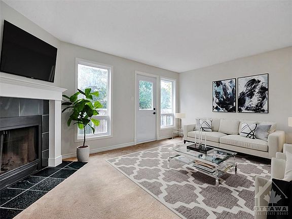 Fantastic END-UNIT townhome located on a quiet, dead-end street in popular Katimavik. This lovely 3 bedroom, 2.5 bathroom with a finished basement and GARAGE offers tremendous value! The contemporary 3 storey floor plan is incredibly spacious. From the large foyer, walk-up to a spacious, south-facing living room with a cozy wood burning fireplace, a formal dining room, an eat-in kitchen plus a main floor powder room and a conveniently situated laundry & pantry off the kitchen. The upper level offers 3 large bedrooms and full bathroom. The primary bedroom boasts a walk-in closet and an ensuite bathroom. The basement features high ceilings, ample storage and a great finished space that could serve many uses. The large, fenced-in backyard backs on trees and boasts an interlock pad. Amazing location, reasonable condo fees, plenty of visitor parking, mature trees and close to good schools, restaurants, public transit, parks & trails, shopping and more! *Some pictures are virtually staged. 2023-11-20