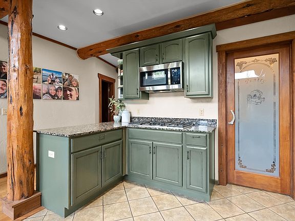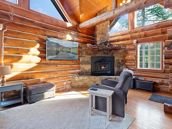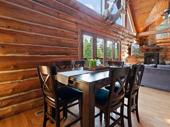 Priced significantly under recent appraised value! Perched above the treetops on over 3.5+ acres just south of Lakeside, this stunning 4-bedroom, 3-bath log home offers over 3,800 square feet of warm, rustic living space. Vaulted ceilings and large windows frame views of the surrounding forest, while the spacious wraparound deck invites you to relax or entertain outdoors. The main living area features a striking rock-surround wood-burning fireplace, and the kitchen is a cook’s dream with double ovens, a walk-in pantry, and ample workspace. Upstairs, the private loft-style primary suite offers a true retreat with a cozy woodstove, large walk-in closet, and an ensuite bath complete with a jetted tub and separate shower. The lower level includes a separate entrance, rock patio, full bath, and kitchenette—ideal for guests, a rec room, or multi-generational living. Outside, enjoy fenced-in raised garden beds and the peaceful setting of authentic log construction that defines Montana living.