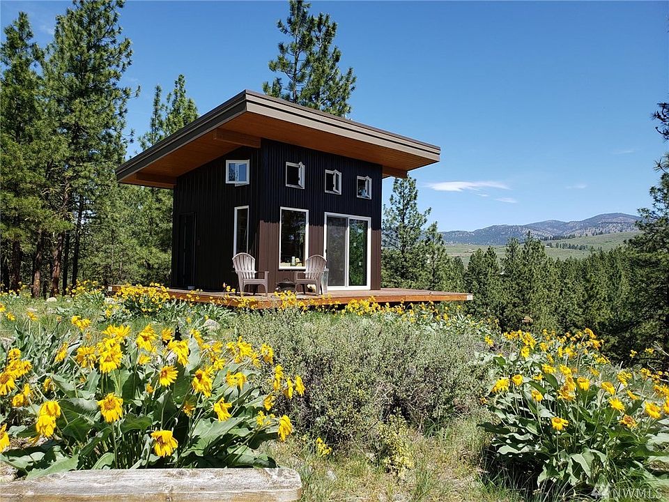 PRIVATE & SECLUDED This 3+ acre lot with a fabulous "Shed" in Rodeo Trails is a must see. Complete with a wrap around deck makes it a perfect place to relax and take in the sunshine and views. Minutes to Winthrop. Community Park & Pool. Camp now with a place to keep all your toys in the "Shed" and build later.