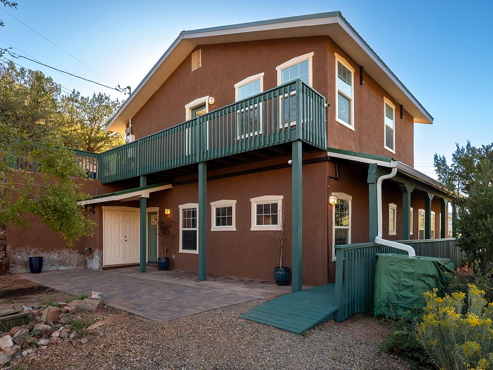 Mountain Retreat in Tijeras! Nestled on 1.6 wooded acres in Canyon Estates, this 5-bed, 2-bath home blends rustic charm with modern upgrades. Enjoy a remodeled kitchen with sealed wood countertops, cozy Harmon pellet stove, and stunning views from two balconies. Energy-efficient features include foam-formed walls, a 1,500-gal water tank, new water softener, and RO system. Recent updates: seamless gutters, French doors, refrigerated mini splits and more. Just 10 minutes from Albuquerque and minutes from I-40!