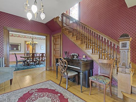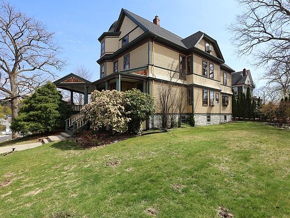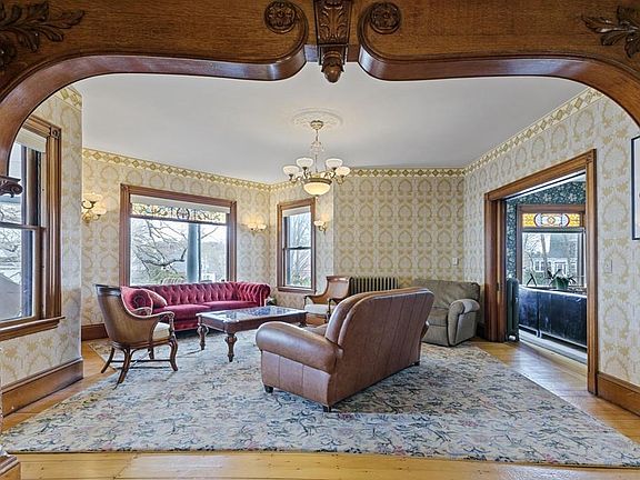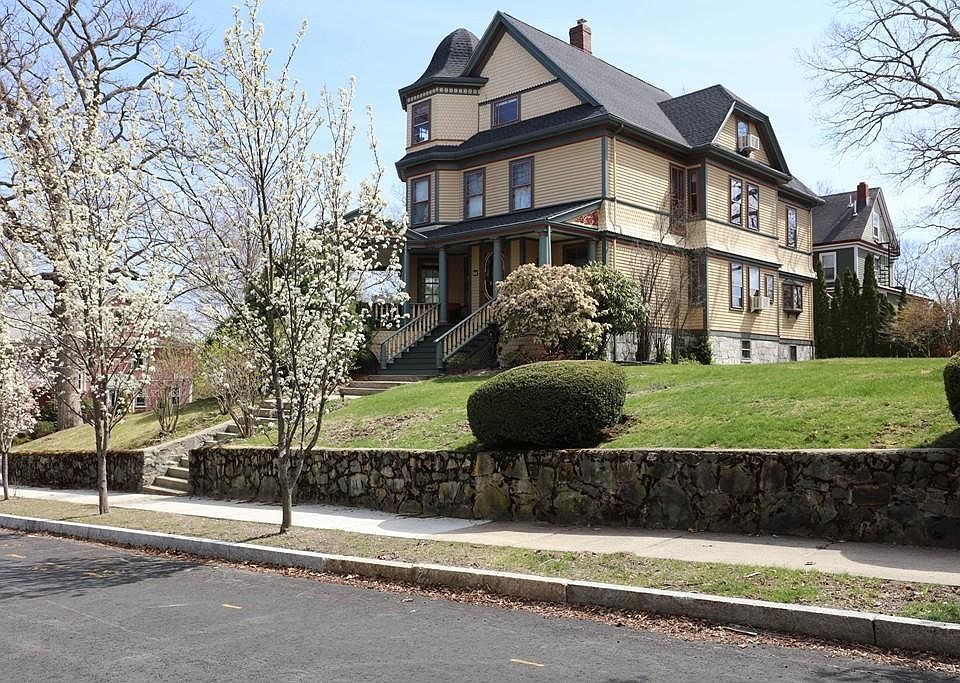 Located in the heart of Melrose, this updated & spacious Queen Anne Victorian home is perfect for entertaining with its wraparound porch & period charm. Step inside the grand entrance to discover a floor-to-ceiling stained-glass window accentuating a magnificent Italian carved, quarter-sewn oak arch. The main floor highlights include double pane windows with stain glass accents, pocket doors, hardwood & wide-board pine floors. The den with William Morris period wallpaper, has a carved oak gas fireplace with European tile. A gourmet kitchen includes SS appliances, Tuscan tile & Italian granite counter tops and island. The second-floor landing continues with another floor-to-ceiling stain glass window. It also offers four bedrooms and a dual vanity bath. On the 3rd floor there is a finished family room with a pitched cathedral ceiling; an office turret with 15' ceiling, bedroom & bath. Plus, a 2 car garage, sprinkler system & fenced in patio area. Close to public transportation.
