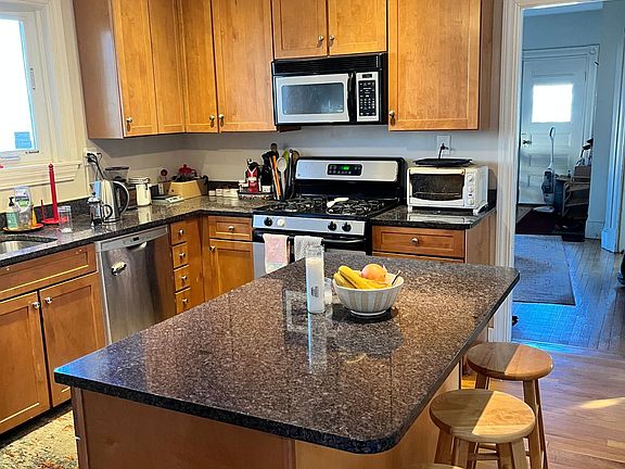 Large 4-bed/2-bath two floor apartment for rent in excellent Somerville location. Short 10-minute walk to Union Square, green line T stop, grocery stores, shops, restaurants and cafes. Living and dining rooms with original hardwood floors throughout. Modern kitchen with granite island/countertops, gas stove, microwave, dishwasher, fridge with ice maker and well-sized pantry. Four nicely sized bedrooms. Front and back private porches. Laundry in-basement. One (1) non-tandem parking space included in rent. Small pets negotiable on case-by-case basis. Available 9/1. First, security and brokers