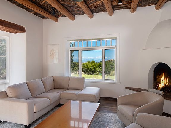 Sunset Mountain Ranch is a serene retreat nestled in the foothills of the Sangre de Cristo Mountains, offering an unparalleled connection to nature and the rich heritage of Santa Fe, New Mexico. Situated on almost 18 pristine acres adjacent to the Santa Fe National Forest, this tranquil estate is just 7 minutes from the city's historic Plaza and the vibrant, newly revitalized Railyard District. The views from the windows, patios, and expansive lawn are truly some of the very best in Santa Fe!