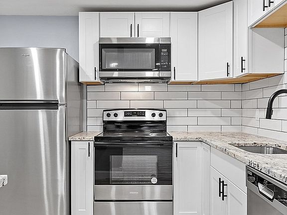 This first floor unit has recently been remodeled top to bottom. New kitchen featuring shaker style cabinets, stainless steel appliances, subway tile backsplash, quartz countertop and breakfast bar. Electrical has been updated with new panel and recessed lighting throughout. Brand new LVP flooring and fresh paint completes each room. New vanity, toilet and tub in bathroom. Updated plumbing. Laundry is just steps away on the first floor. Extra storage is available on the third floor. Professionally managed with a low condo fee and a deeded parking spot. Pet friendly and minutes from the highway, shopping, restaurants and more. If all you're looking to do is move in and just unpack, this is the home for you.