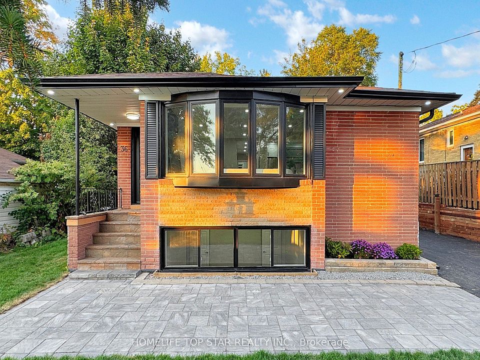Welcome To 36 Belyea Crescent, A Beautifully Renovated Bungalow With Top-Doller High-Quality Upgrades No Detail Has Been Overlooked! The Main Floor Showcases A Contemporary Open-Concept Design Featuring A Custom Kitchen With An Island, Granite Waterfall Countertops & Backsplash, Brand New Samsung Appliances and An Elegant Electric Fireplace. Upstairs, You'll Find New Bathrooms, Engineered Hardwood Flooring, Upgraded Baseboards, And Brand New Windows And Doors, Including A Stunning Front Bay Window. The Finished Basement With A Separate Entrance Offers Three Additional Bedrooms, Perfect For Extended Family Or Rental Income. Exterior Enhancements Include Full Waterproofing, A New Retaining Wall, Interlocked Walkway, Fresh Asphalt Driveway, Updated Gutters With Led Pot Lights & Lamp Post and New Sod. The Extended Driveway Provides Parking For Up To Five Vehicles. Located On A Quiet, Family-Friendly Crescent Close To Schools, Parks, Shopping, Transit, And Scarborough Town Centre, This Home Offers The Ideal Combination Of Luxury, Comfort, and Convenience In The Vibrant Heart Of Bendale. Don't Miss This Once In A Lifetime Opportunity!