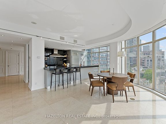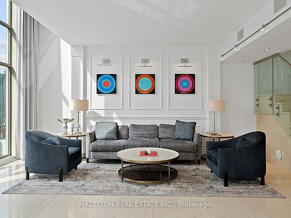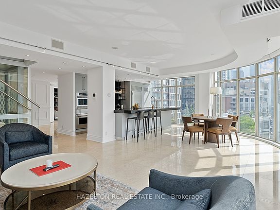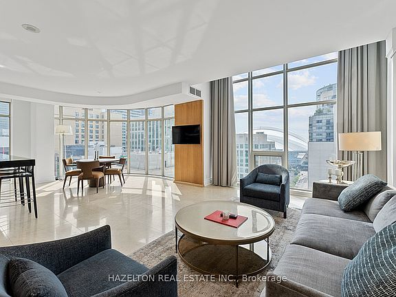 Experience unparalleled luxury living in this breathtaking 5,000+ sq.ft. penthouse with a private 1,215 sq.ft. terrace offering unobstructed panoramic city views. This one-of-a-kind residence is defined by soaring ceilings, dramatic floor-to-ceiling windows, and refined designer finishes throughout.Upon entry, a private glass elevator welcomes you into a spacious open-concept living, dining, and chefs kitchen area, complemented by a separate dining room and a library with bar that is ideal for entertaining.The second level features two bedrooms, including a grand primary suite with its own den and a spa-inspired ensuite with tub and glass shower. The second bedroom offers a private entrance, an open walk-in closet, and a bathroom with both a glass shower and tub.Once you reach the top floor, you'll find an exclusive private entertaining space featuring a dramatic media room with 14 ceilings, a full indoor kitchen, spa-like bath, and fireplace. This area opens to a grand rooftop terrace overlooking the CN tower and Toronto skyline, complete with a hot tub, cold plunge, summer kitchen, and BBQ, making it perfect for hosting and entertaining.The building amenities include a 24-hour concierge and security, weekly housekeeping provided by the hotel, a fully equipped gym, steam rooms and saunas, an indoor saltwater pool with whirlpool, a rooftop terrace, as well as a boardroom and party room. The suite is available for short-term lease (minimum 3 to 8 months).