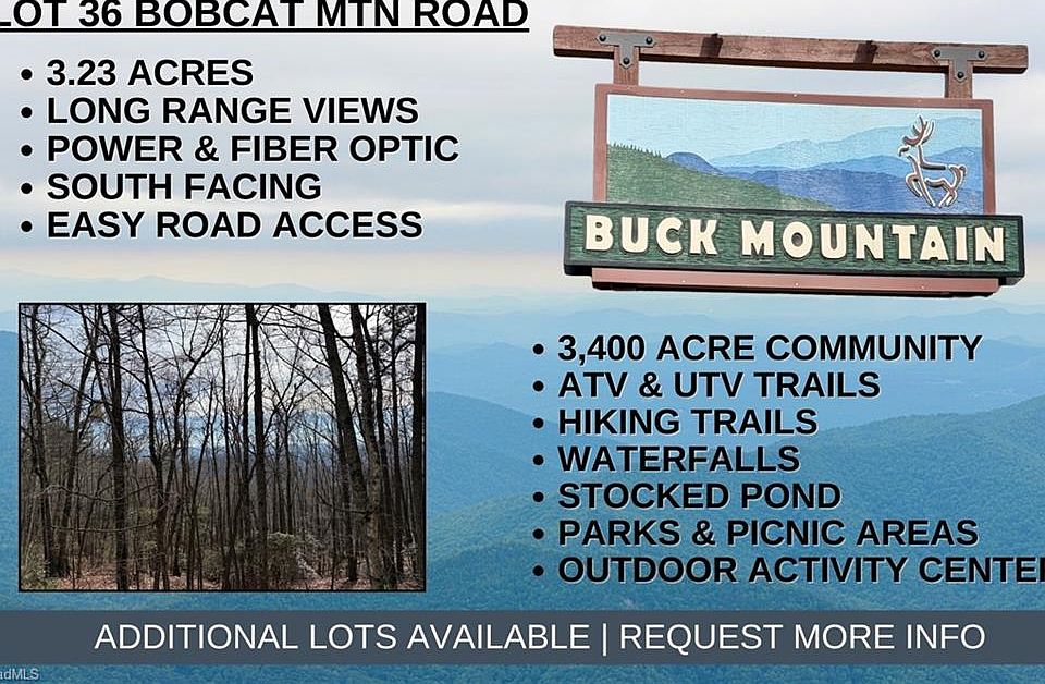 Dreaming of building a home in the mountains? Enjoy optimal sun exposure w/this 3.23 acre south-facing lot, offering a tranquil place to relax & enjoy nature. Long range layered view potential w/tree trimming. Property corners marked. Electric available at road. FIBER OPTIC available. Long & short-term rentals allowed. Conveniently located in 3,400 acre Buck Mountain...ONLY GATED ATV COMMUNITY in Wilkes County. Buck Mountain is a PRIME LOCATION! Travel Times: Winston-1 hr, Charlotte-1 hr 40 min, Raleigh-2 hrs 45 min. Just min from High Country activities. Centrally located 35 min from Boone, West Jefferson & Wilkesboro. Close to BLUE RIDGE PKWY, ASU, shopping, dining, golf, wineries, breweries, mtn biking & skiing. BUCK MTN HAS HARD TO FIND AMENITIES: ATV & Hiking Trails, Parks, Fishing Pond, Water Falls, Pavilions, Community Ctrr, Helipad, Outdoor Activity Ctr w/stage for live music, community gatherings, etc. 1,400 SF min to build. NO TINY HOMES. NO MOBILE HOMES. NO SELLER FINANCING.