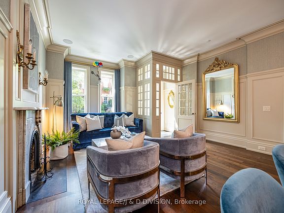 Magazine-worthy residence that blends timeless elegance with superior craftmanship. Renovated back to the studs. This exceptional property was reimagined by Phillip Mitchell Design, with construction overseen by Brookview Homes. Every detail reflects a deep respect for the neighbourhood and the home's character, while introducing refined and impeccably tailored elegant finishes throughout. Main floor open living and dining, a chef's kitchen, mud room, powder room, second floor family room, luxurious primary suite, laundry and a third floor with good ceiling height and two more bedrooms. Finished lower level with recreation & second laundry room. The curated interiors feature bespoke built-ins and cabinetry by Bellini Cabinetry, exquiste mosaics and tiles from Saltillo imports, and premium plumbing fixtures by Waterworks. Windows & doors were supplied by Marvin Windows, while solid wood doors were sourced from Hazelton Wood Design, paired with antique brass hardware imported from England. Meticulous millwork-including custom trim, wainscoting, and crown moulding crafted by Wood Millers, complementing the replicated newel posts and spindles and a newly designed staircase by StairTech. Exquisite hardwood flooring extends across all three levels, enhancing the home's seamless flow. Artistic touches include custom drapery, hand-painted murals by Marilena Madio and elegant lighting from Circa Lighting and Urban Electric. The exterior is professional landscaped by Chandler & Company and sets the stage for a private urban city garden retreat, complete with flagstone patio, custom-designed pergola, detailed lattice fence with integrated mirrors to reflect the plantings. A rear parking area for two cars with an electric vehicle charger. Just steps from Yorkville and Bloor Street, on the only non-through street... this turnkey residence offers a rare opportunity to live in one of Toronto's most coveted neighbourhoods. Few homes in the Annex captivate like 36 Boswell Avenue.