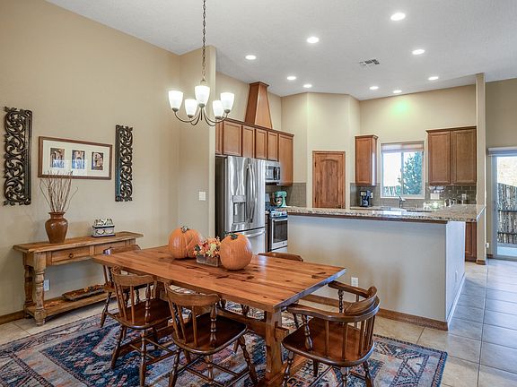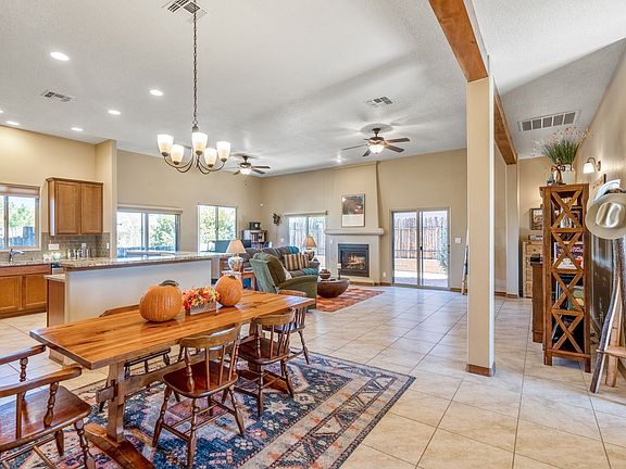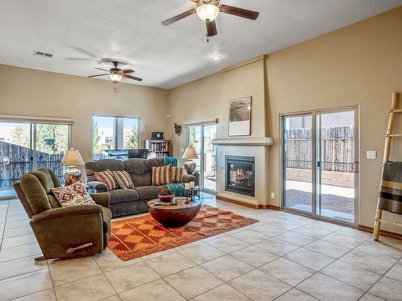 La Pradera beauty was built in 2018. Single-level home beautifully appointed and on a green belt for additional privacy. Perfect for the Los Alamos or Albuquerque commuter. The extensive trail network in and around the community. Tremendous pride of ownership. The home was pre-inspected and is ready to go! This home includes high ceilings and an open-concept, gourmet kitchen with a walk-in pantry, recessed lighting, granite countertops, and stainless-steel appliances. A spacious dining area and large living space complete the home’s welcoming great room. Natural light pours into the living area through sliding glass doors that open into the wrap-around backyard perfect for year-round entertaining. Good separation of bedrooms across the dwelling afford ample room for family or overnight guests. Smart Home features integrated throughout the residence put security and convenience at your fingertips: Google Nest thermostat, Amazon Blink doorbell and security cameras, and Phillips Hue lighting in the primary bedroom.