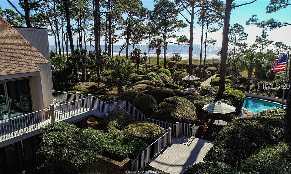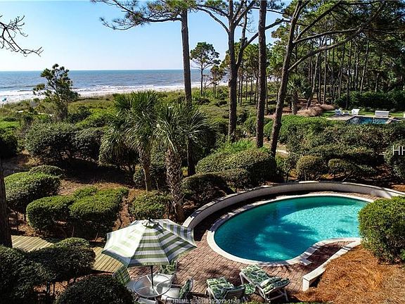 ONE OF THE MOST DESIRABLE LOTS in Sea Pines. Lot number 1. Has a market premium 115 OCEANFRONT FOOTAGE. Best access in and out of plantation located just inside ocean gate. Entryway into a charming brick courtyard with a fountain and fireplace. Great privacy with lush manicured landscaping. Living room has vaulted ceiling with a wrap-around deck overlooking pool and a breathtaking ocean view. Enclosed oceanside porch. A great permanent home, second home, or vacation property.