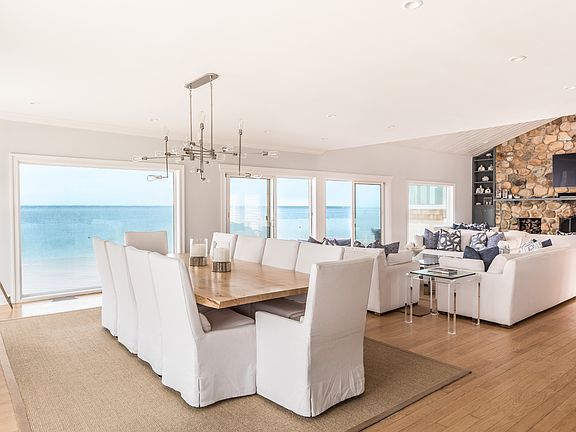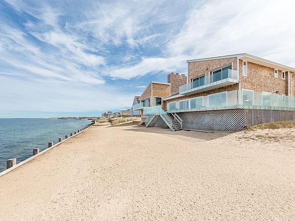With a newly completed million dollar renovation, this one of a kind 6,200+/- sq. ft. contemporary offers a soaring great room with a massive stone fireplace adjoining a gourmet kitchen and dining areas. Six bedrooms, five and one-half baths, including a master suite with luxurious bath, billiard room, playroom, and a loft overlooking gorgeous west-facing water views and enormous wraparound decking & hot tub. Your own stairs lead to the sublime sound beach with all day viewing, water activities and the most spectacular sunsets over Gardiners Island in all of Montauk. Quite simply, the quintessential beach retreat and one of our most coveted locations.