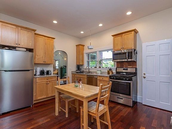 Spacious renovated condo on two floors with large yard and two off street parking spaces. Bedrooms are laid out for privacy and include three king size bedrooms and one queen size. Enjoy the outdoors on the front porch or large fenced in and landscaped yard. Shopping and transportation options are short distances to both the Porter Sq Train & Shopping Center and the new Magoun Sq T station. Modern central heating with two zones. The kitchen has stainless steel Energy Star appliances, gas cooking, and a large eat in space. Unit Features Brazilian cherry hardwood floors. The large living room has bay windows, high ceilings, crown molding, and Southern light. Both levels have common area living/sitting room, a full bathroom and all bedrooms are located for privacy. Separate Laundry Room w/ front-loading washer/dryer. Owners provide window A/C. Pets are negotiable. Available for year lease beginning in September. Flexible lease start dates throughout September. First Months Rent and Broker Fee (equal to one months rent) due with accepted applications. Security Deposit (equal to one months rent) due on or before the lease signing. Available for lease beginning September 1 and running through a summer month in 2025. Owner pays for water and sewer, tenants pay gas for heat/hotwater/cooking and electric for lights and outlets. Pets are negotiable.