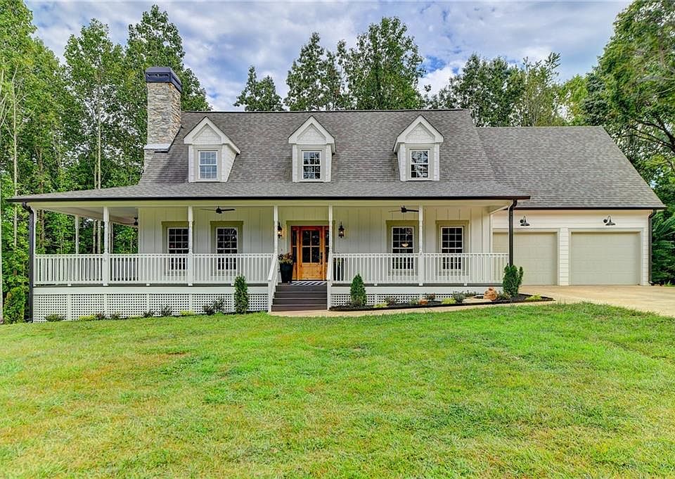 Originally built in 1989, this property has been completely Renovated by Professionals and Designed by Davenport Studio, Newport Beach, CA. Come and see this beautiful Modern Home on 4.5 Acres with 5 beds 4.5 bath with Wrap Around Porch MAIN House with a 1 bed 1 bath spacious GUEST House. Main house has all new Siding, new Gutters, new Deck, new Flooring, new Trim, new Doors, new Paint Everywhere, new Wiring, new Plumbing, new Bathrooms, new Laundry Room, new HVAC, new Appliances, new Kitchen, new Light Fixtures & Fans, a Coffee bar and so much more. New White Oak hardwoods are on the main floor, primary bedroom upstairs and hallways. Kitchen is built for a chef with Gas Cooktop, Double Ovens, Microwave drawer and massive Island. Countertops are Hard Marble. Pocket door hides a 7'x7' Walk-in Pantry with Appliance shelf. The Primary plus 3 bedrooms are upstairs along with the laundry room and 3 Full baths. Basement is mostly finished with a Flex room, Bathroom, adjoining Bedroom with seating area and a small kitchenette. The 44' x 31' Guest house has living quarters(Living Room, Bedroom, Kitchen, Bathroom, closet with Laundry)over a deep Garage, storage and large workshop area. Behind the Guest house is a fenced 1/4 acre and a 1 stall barn. Property is on Etowah water but also has a deep drilled well which can be used for Irrigation or switch the house back with little effort. View of the Mountains from the Wrap Around Porch. This home is 4 miles from the Dawsonville Outlets, Grocery stores, etc.,
