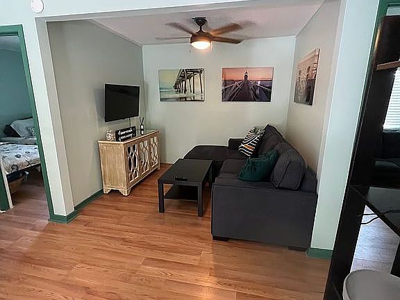 Fantastic yard spaceOutdoor dining setLarge deck with grillFire pitBeach chairs and umbrella