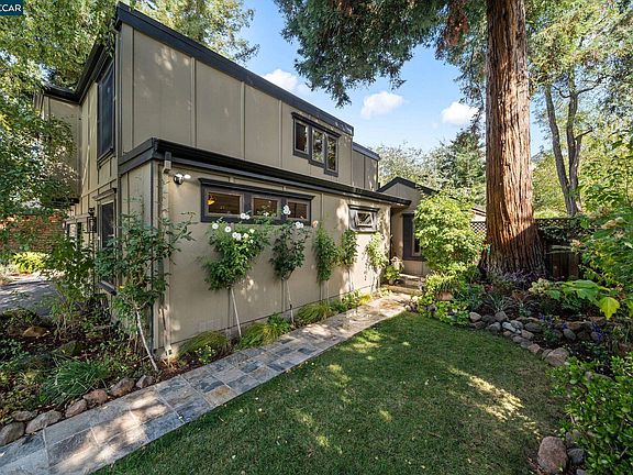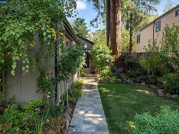 This charming remodeled property is drenched in natural light and nestled in a private enclave of only 9 homes in Westside Alamo. Featuring 2,147 square feet of expansive living space, this 4 bed 3 bath home boasts an open floor plan, hardwood floors, vaulted ceilings, a storybook yard adjacent to the creek, two-car garage, & designer touches throughout. The beautifully updated kitchen complete with granite counters, stainless appliances, and ample storage overlooks a family room with vaulted ceilings, a fireplace, and windows to take in the views. The adjacent dining area features vaulted ceilings & opens to the wrap-around patio perfect for entertaining or enjoying the serene setting surrounded by mature trees and views of the creek. The yard is something out of a storybook, with lush landscaping, meandering paths, & an additional paved patio that overlooks the creek. Upstairs is a large primary retreat with soaring ceilings, a walk-in closet, and a private deck. There are two additional bedrooms upstairs, a full bath, and laundry. The fourth bedroom and a full bath are conveniently located on the first floor. Enjoy a community pool & sports court in addition to an incredible location just minutes away from shopping, the Iron Horse Trail, and top rated SRV schools.