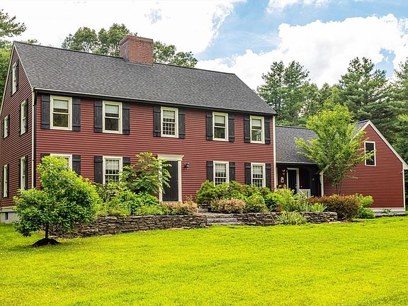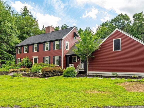 Discover modern luxury in this colonial style home on 10 private acres. Pine flooring throughout with fireplaces in the kitchen, living room, and main bedroom create a warm ambiance. The gourmet kitchen features cherry cabinets, granite countertops, dual wall ovens, a Bosch dishwasher, and a new Wolf cooktop. The main bedroom offers a bathroom suite with a double rain shower, river rock floor, double vanity, walk-in California closet and heated floors. Efficiency features include geothermal AC/heating, optional oil heat and owned solar panels with back-up storage system. Outside, enjoy a 1,000 sq ft bluestone patio and ample gardening space. Recent upgrades include a new driveway and gutters. Public and well water are available with well water running the geothermal system and utilized for gardening. Secluded yet accessible, this custom-built home is in close proximity to major amenities. Don't miss out on making this stunning home your own. Schedule a private showing today!