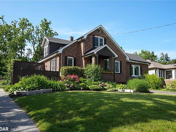Set on one of Barrie’s most prestigious streets, this exceptional 3-bedroom, 2-bath home combines timeless character with modern comfort— offering a rare opportunity to own nearly half an acre in the heart of the city. Framed by towering trees and located just minutes from the lake, top-rated schools, and vibrant downtown amenities, this all-brick residence is a true standout. Inside, you’ll find engineered light oak flooring, pot lights throughout, and a neutral, move-in-ready palette that highlights the home’s historic charm. The spacious kitchen features solid oak cabinetry, quartz countertops, a bar sink, tile backsplash, and expansive windows that overlook the showstopping backyard. Upstairs, two bright bedrooms include one with custom closets and built-ins, while the third bedroom and beautifully updated bathrooms (3-piece on the main, 4- piece upstairs) offer flexibility for family living or guest space. A finished basement provides a dedicated laundry area, additional storage and a recreation space perfect for entertaining/childrens playroom. What truly sets this home apart is its luxurious, professionally landscaped lot— measuring 87 feet wide by 236 feet deep. Step outside into your own private resort: interlock and flagstone pathways wind through lush gardens, with armour stone features adding dramatic elegance. At the heart of this private oasis lies a stunning kidney-shaped in-ground pool, artfully set into its natural stone surroundings and complemented by a charming pool house—all fully fenced and surrounded by mature greenery that ensures year-round privacy and serenity. Additional features include two driveways, a fully fenced yard, and unbeatable access to parks, waterfront trails, cafes, and shops—all within walking distance.