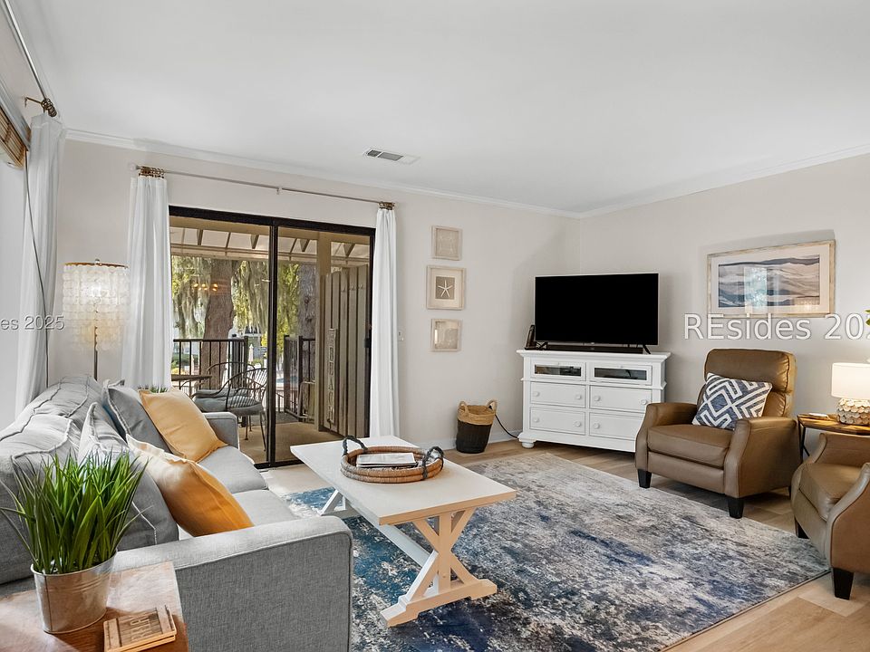 Wake to serene water views from your semi-private balcony overlooking a picturesque lagoon. Draped in elegant Spanish moss and framed by mature oak trees, this idyllic setting evokes the unique charm of the Lowcountry. #38 Springwood Villas captures the essence of coastal comfort with a spacious open-concept living area with abundant natural light, neutral tones, and elegant finishes. This fully-renovated villa features three bedrooms, each with its own updated en suite bathroom, as well as a modern kitchen with sleek granite countertops, stainless steel appliances, and a chic sea-glass tile backsplash. Additional updates include high-end commercial grade LVP flooring, stylish lighting, coastal-inspired color palettes throughout, upgraded mattresses, the addition of a supplemental mini-split (first-floor bedroom) in 2024, and a brand-new water heater and HVAC system in 2025. Springwood Villas owners and their guests enjoy a community pool overlooking a semi-private central courtyard accented by lush tropical landscaping, all within a short walk to the beach, Coligny Plaza, and nearby Celebration Park. A large attached storage locker conveys with the villa, perfect for quick and convenient access to folding chairs, umbrellas, and beach wagons. In recent years, a proactive board has made great strides towards improving the community finances, buildings, and grounds. With its unbeatable walk-to-beach location and move-in-ready condition, #38 Springwood Villas presents exceptional vacation rental potential, grossing $52k against 152 nights in 2024 ($345/night), and well on track to meet 2024's gross numbers by year end.