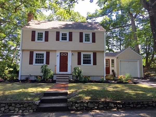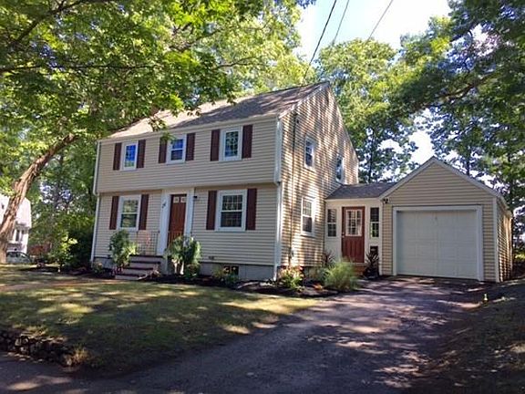 Welcome Home! Three Bedroom Open Concept Colonial first floor offering front to back living-room with wood burning fireplace, and Kitchen with eat-in dining area. Property has been remodeled, NEW Roof, Windows, Siding, Heating System with C/A, Brand new Kitchen with Granite counter-tops and Stainless Steel Appliances. The List goes on!!! Interior has hardwood flooring throughout, Master bedroom has double closets. Mud room off garage offers additional storage and access to rear deck. Additional finished room in lower level great for family room or potential Fourth bedroom. This is a Must See!!! Commuters would be happy to know Rt 95, Mass Pike, Rt 9 and Riverside T Station are minutes away. And to Top it off house is located in the Angier School District!!