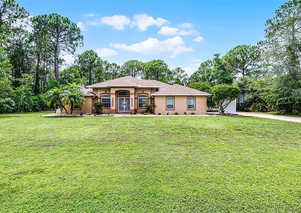 One or more photo(s) has been virtually staged. Spacious Pool Home on a private, 1 Acre Lot! Nestled in a serene setting with no rear neighbors, this beautiful 4-bedroom, 2-bath home offers the perfect blend of comfort, privacy, and Florida living. The inviting front entry welcomes you with mature landscaping and a stylish double-door design. Inside, you'll find an open, flowing layout that is filled with natural light and designed for both relaxed living and stylish entertaining. The owner’s suite features a generously sized bedroom, walk-in closet, and a spa-inspired bath complete with a soaking tub, separate walk-in shower, and dual vanities — the perfect place to unwind after a long day. The kitchen flows into the living areas and overlooks the screened-in pool, perfect for year-round enjoyment. Step outside to your private backyard oasis featuring a sparkling pool, expansive deck, and plenty of green space for pets, play, or gardening. An extra-long driveway leads to a covered RV or boat parking area, plus there’s an additional storage shed for all your outdoor gear. Situated on an acre lot and surrounded by lush greenery, you’ll enjoy peace and seclusion while still being just minutes from shopping, dining, and major highways. Don’t miss your chance to own this rare find — a pool home with room to spread out, park your toys, and enjoy the Florida lifestyle! Home is on .53 acres. Additional parcel (80-31-01-14-0010) is included in the sale for a total of 1.06 acres.