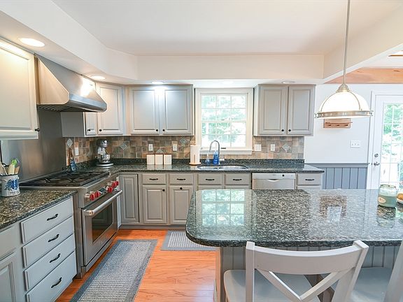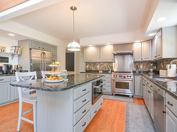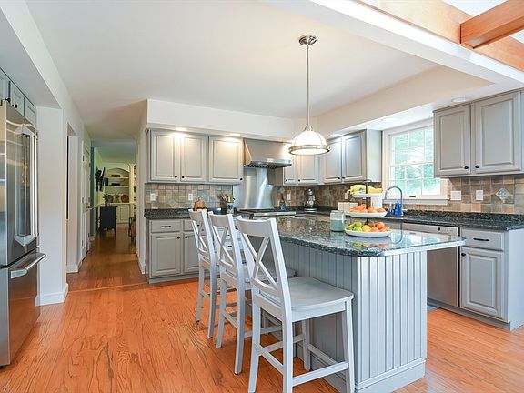 - Features: Cathedral Ceiling(s), Beamed Ceilings, Flooring - Hardwood, Dining Area, Countertops - Stone/Granite/Solid, Kitchen Island, Country Kitchen, Open Floorplan, Recessed Lighting, Stainless Steel Appliances, Wainscoting
