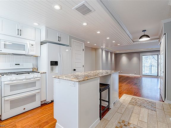 Great opportunity to live in the heart of Chagrin Falls! Close to shopping, restaurants and everything this beautiful town offers! This 3 bedroom, 2/5 bathroom, maintenance free condominium has a wooded backyard to experience the seasons from your deck or walkout patio. Many recent updates here include new cherry oak wood flooring throughout the first floor. Open, renovated kitchen with granite counter top, very attractive backsplash, white shaker cabinets & all new fixtures! The ample sized dining room is open to the huge living area that leads to the oversized deck for your enjoyment! Also here is renovated half bathroom & nice sized foyer. The first floor has the open feel everyone wants! The second floor features 3 sizable bedrooms and 2 full renovated bathrooms, including huge master bedroom with two closets. The walk-out lower level has a large living area, new carpeting, sliders to the patio with spectacular view and laundry. Other updates include interior painting, refinished h
