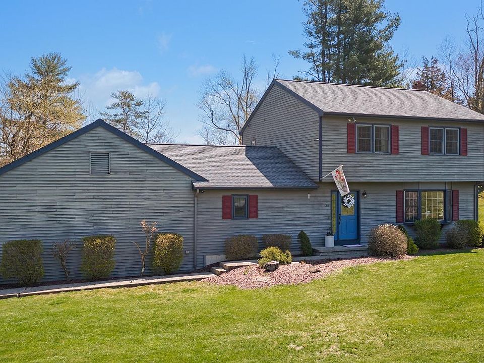 A private road, shared by just a few of your neighbors, leads to this well maintained, colonial style home on just under one beautifully manicured acre conveniently located on the border of the Town and Village of Catskill. Walking through the front door you are greeted by a light filled living room featuring a large bay window, dining room, eat in kitchen, family room and a tiled, full bathroom. An attached two car garage includes additional overhead storage space.Upstairs includes a master bedroom featuring its own dressing area and walk in closet, two additional bedrooms and a full bathroom complete this floor. Outside, the deck overlooking your backyard is perfect for warm weather gatherings of family and friends, or for spending some quiet time reading a good book. The backyard, ideal for a number of outdoor activities, also features a fire pit, a great place to sit around and tell stories on those cool summer evenings. Plenty of storage space for your toys and tools is available in the storage shed situated at the back edge of your property.