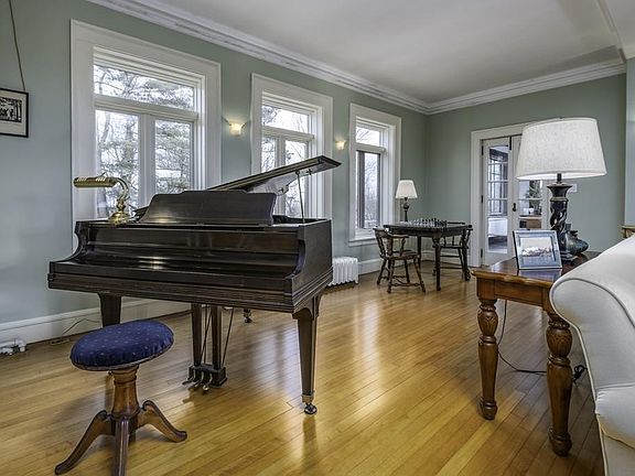 - Liv Dscrp: Fireplace, Flooring - Hardwood, French Doors, Ceiling - Beamed, Wood / Coal / Pellet Stove, Crown Molding, Lighting - Sconce