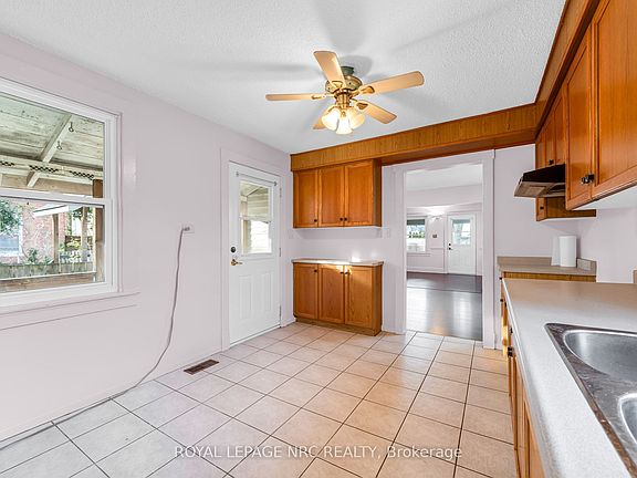 Welcome to this 1.5-storey home, just a short walk from the downtown core. Perfectly situated near shopping, schools, and amenities, this property offers both convenience and comfort. Featuring 3 bedrooms and 1.5 baths, the main level includes a bright kitchen with ceramic flooring and direct access to a deck and back patio area. Updated windows bring in natural light throughout.The partly finished basement provides a versatile computer area, laundry, storage, and a second bath. With a low-maintenance 22x67 lot, you'll enjoy easy upkeep year-round. Please note: there is no driveway, but street parking permits are available from the city for just $55.85 annually. Note: central air unit is not working.This home is a fantastic opportunity for buyers or investors seeking a practical layout, and a prime location close to everything.