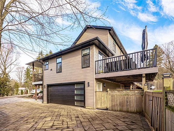 If you are looking for a beautifully updated custom built home walking distance to Downtown Elora , then this is it ! This one is a real gem hiding in plain sight. Located on a very quiet little known street - not even a lot of the locals know it is there. If you are a discerning buyer looking for something different, you need to take a look. The current owner has done a truly spectacular job with high end updates over the past couple years - designer kitchen including new appliances, a jaw dropping luxury ensuite, fireplace wall and maple flooring to name a few - plus exterior updates like windows, siding, composite decking, interlock driveway and more. Great curb appeal with a magazine ready interior to match. Open concept with vaulted ceiling to upper level. A very spacious feeling home with plenty of natural light. Over 2200 square feet of living space, 3 bedrooms and 3 bathrooms. ( Flexible floorplan would allow for a 4th bedroom on lower level if needed.) Main floor primary suite with walk through closet and that "to die for" ensuite. Renovated main floor laundry room. Two more bedrooms and nicely updated bath on the upper level. Completely finished lower level with walk out to double car garage. Covered front porch and spacious decking out back ( with hot tub and gas bbq hookup ). Situated on an amazing large private treed lot. Fenced year yard. Close to the Gorge and walking trails - and a short stroll to the restaurants, cafes and shops and everything Elora has to offer. A special home with a flexible & unique layout that will work for both empty nesters and families.