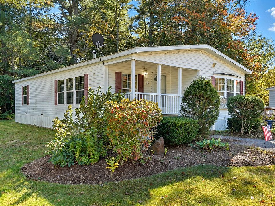Welcome to Barrington Estates conveniently located off Rt. 9 in a privately owned mobile home park with no age restrictions. This 2006 double wide mobile home offers two bedrooms and two full bathrooms in addition to an open concept living and dining space. The kitchen offers oak cabinetry, custom laminate backsplash and countertops, island, custom built-in's and an eat in kitchen. Other notable features include a wood stove, bay windows allowing ample light into the home, vinyl flooring and carpet throughout, skylights, porch, vinyl siding and a shed. Accessibility for entry can be made by access of a ramp or front steps. Community well and shared septic, both maintained by the park. Overflow parking for RV's or boat storage offered for an additional fee. No age restrictions. Cats ok, sorry no dogs allowed. Park application and approval required. Open House Saturday 10/11/25 & Sunday 10/12/25 from 10am-noon.