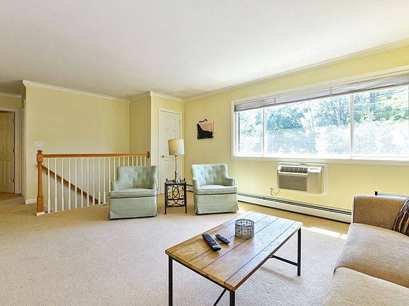 Village living so easy, Walk from train to home, hiking, river, shops and schools. Perfect for year round or seasonal use this second floor condo offers a beautiful full gourmet kitchen, living room with seasonal views, a sweet deck sits under a tree for quiet times. A very reasonable common charge includes pool, grounds, heat, hot water, basic cable.