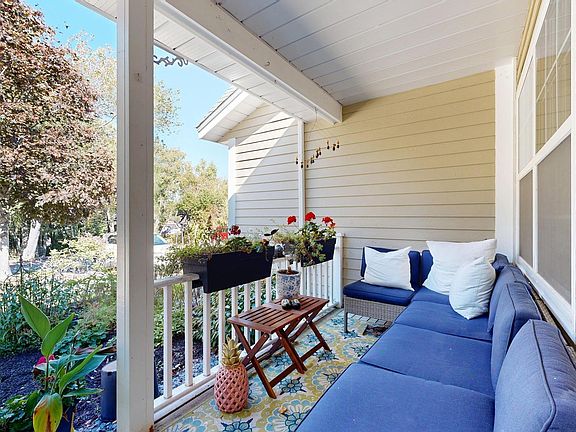 Private patioCovered porchPeaceful friendly small-town surroundingsBuilt-in bookcasesOpen-concept layout