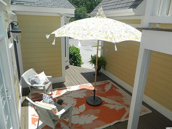 Your dream of beach living awaits in this Charleston style home located on a corner lot in the gated Reunion Hall community. With ownership you have private access to Litchfield by the Sea Resort and one of the most beautiful seascapes on the Atlantic. This well-kept home features 3 bedrooms all upstairs and 2 1/2 baths in the main house and a separate apartment with its own full bath and kitchenette space above a two car garage. Hardwood floors, tall ceilings and a great flow create generous spaces including a large living room featuring tall bay windows and a 15 x 17 master bedroom with private balcony, tray ceiling, and walk-in closet. The master bath includes a large soaking tub, separate shower and double vanities. An arched entrance frames the beach inspired dining room with statement beaded chandelier. The dine-in kitchen with granite, stainless and plenty of upgraded cabinets adjoins a comfortable family room with fireplace and double French doors to the deck for indoor-outdoor entertaining. When away it has a security system set up for added convenience. With walking trails throughout, the beach at LBTS and pool at River Club are only a short bike or golf cart ride away along with convenient shopping, dining, golfing, and tennis options. Arrange your viewing today!