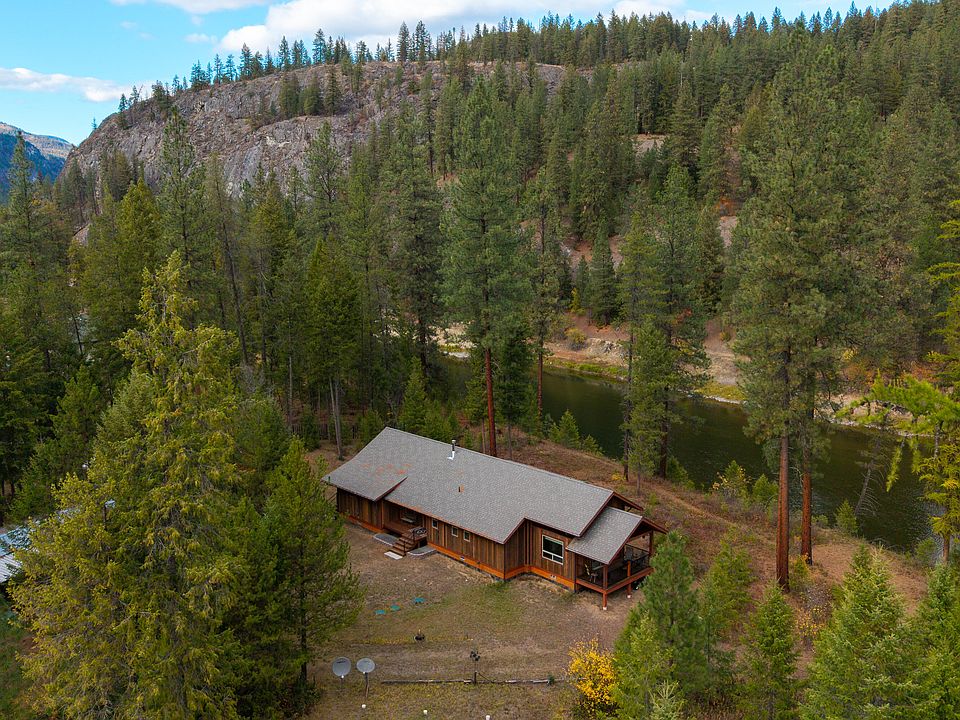 Kettle River Waterfront Paradise it's like buying your own Park! Elegantly built home with an open floor plan, vaulted ceilings with lots of windows to let the sunlight and views inside. Floor to ceiling tiled wood stove in the living room with a spacious redwood deck to watch the river flow. Special crafted kitchen with Acacia wood counter tops from Africa, Hickory cabinets with an abundance of counter space and storage, large dining room with a private viewing deck. Primary bedroom with jacuzzi tub, walk in shower and closet plus electric fireplace. Plenty of bathrooms for entertaining and sleep overs. Separate Cabin with running water, electricity and private outhouse. Serene setting with large deck, trees and expansive yard. Plenty of water with a private well and 2 car carport with storage room, plus a Rv carport and the well house has an additional storage room. Level and private acres for your recreational needs.
