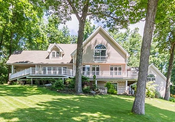 Prime location on East side of Groton on the top of Floyd Hill. Prestigious home situated on 6 private acres boasting gorgeous panoramic views. Property abuts walking trails & conservation land, steps away from Badacoock Pond boat launch. This elite home features open concept living at its finest. High end appliances in the eat in kitchen w/ custom cabinetry. Gourmet kitchen is open to see through fireplaced family room and also to the sunroom & dining room. There is a private first floor office & half bath. Gorgeous wrap around deck off the family room w/a lovely patio & a built in fire pit in the back. Enormous bonus room above 3 car garage which offers endless possibilities. Elegant cathedral ceiling master suite w/ lavish bath featuring tile shower, soaking tub & grand walk in closet. Other 2 bedrooms are generously sized. Lower level has a walk out & is finished w/ a 4th bedroom-full bath, media room, work out room, & another half bathroom. 5 bed septic system.