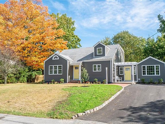 This newly remodeled home in East Greenwich is located in a quiet, family friendly neighborhood. The open concept first floor features a brand new kitchen with quartz countertops, stainless farmers sink, and stainless steel appliances. The center island has additional storage space and bar seating. There is new hardwood flooring in kitchen, dining room and first floor master suite. The master suite features a large walk-in closet and luxurious private bath with double vanity. Also on the first floor is an expansive den with wood burning fireplace, exposed beams and a cathedral ceiling, plus the renovated half bath and a laundry room. Upstairs are three bedrooms and another renovated full bath. The finished lower level has new wall to wall carpet and works well as a playroom, man cave, office or room for guests. The basement also features additional finished space ideal for crafts or a workout room plus plenty of storage space. Throughout the interior and exterior you'll find new finishes and features such as: new entry doors and most interior doors, new vinyl windows, new central air conditioning on the 1st floor and ductless system on the 2nd floor, new vinyl siding, new asphalt driveway, and new landscaping. Don't forget about the private fenced in backyard with a large inground pool with a brand new liner! This well-established neighborhood is just a minute from the shops and restaurants in downtown East Greenwich and yet a short drive to I-95 and TF Green.