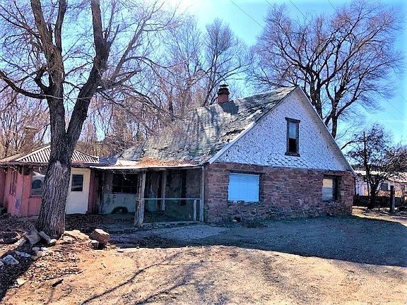 Great fixer-upper house in Romeroville. Exterior partial stone walls with stuccoed addition, pitched metal and shingle roof, hand dug well in addition and well house with tank in the back yard. Three bedrooms and one full bath, large kitchen with room for a dining table, living room, mud room, room upstairs in attic for another room, and one car garage. On a lot with mature trees. Buy it and turn it into a beauty. Convenient location on the I-25 frontage road at Romeroville. Easy access to the highway and only a few miles west of Las Vegas.