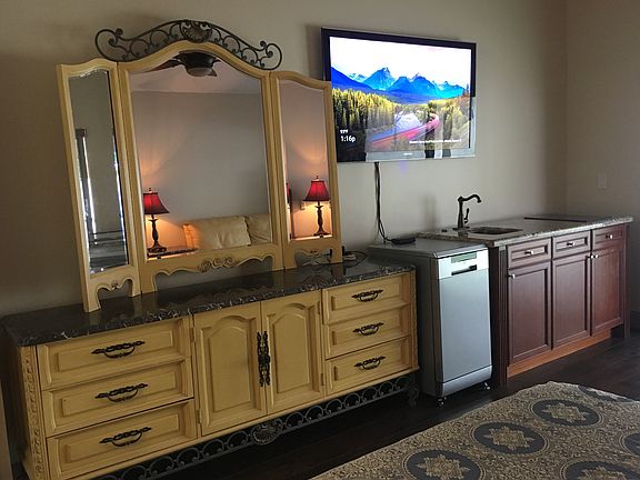 LUXURY Furnished Premium Studio Suite on quiet street with one-price all-inclusive utilities, cable TV and high-speed internet with WiFi. Freshly painted. Hi-end furniture, dishwasher, modern induction surface for cooking, granite counter, TV and more. Functional split layout with patio and driveway.