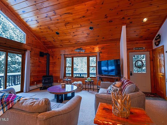 Experience the peace and charm of Adirondack living in this beautifully maintained, year-round log home with deeded access to non-motorized Tripp Lake. Just a short walk away, enjoy a shared sandy beach complete with a swim raft and convenient storage for your kayak or paddleboard. This inviting raised ranch offers an open kitchen, dining, and living area with vaulted ceilings, a brand new propane fireplace, and natural wood accents for a warm, rustic feel. The main level features three bedrooms and a full bath, while the lower level provides a bedroom, a second full bath, a cozy den, and a dedicated home theater—ideal for relaxation or entertaining. Additional highlights include an attached heated garage, a wraparound porch, and a full-house generator. A perfect year-round getaway nestled in the Southern Adirondacks. Furniture is negotiable.