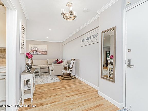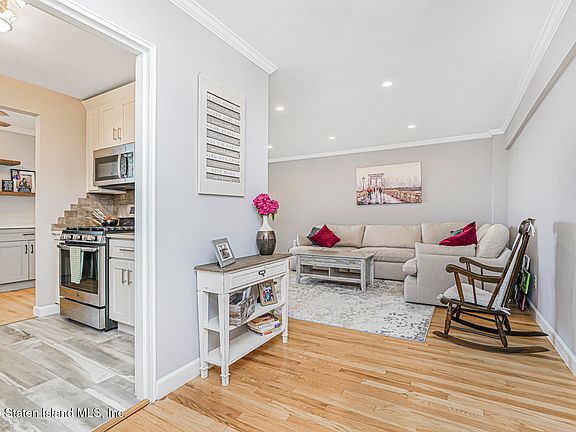 Welcome to this beautifully renovated one-bedroom, one bath penthouse style co-op offering style, comfort and convenience in the heart of St. George. Bathed in natural light, this home features custom closets, crown molding, recessed lighting, new flooring, and a stunning modern kitchen designed for both everyday living and entertaining. The brand-new bathroom adds a touch of luxury, while every detail reflects thoughtful updates throughout.
