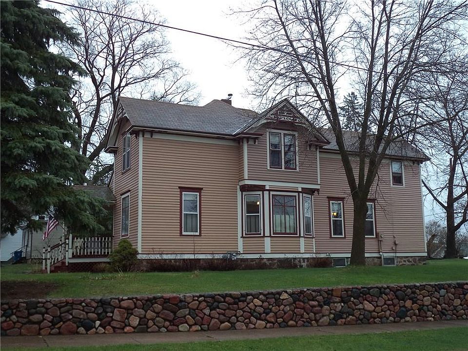 Large historic home in Rice Lake. Home has been updated but has kept its original decor. Hard wood floors and wooden stairway with banister show this classic style from years gone by. House has both a forced air furnace and boiler (hot water) heat. Located near downtown on corner lot with nice landscaping.