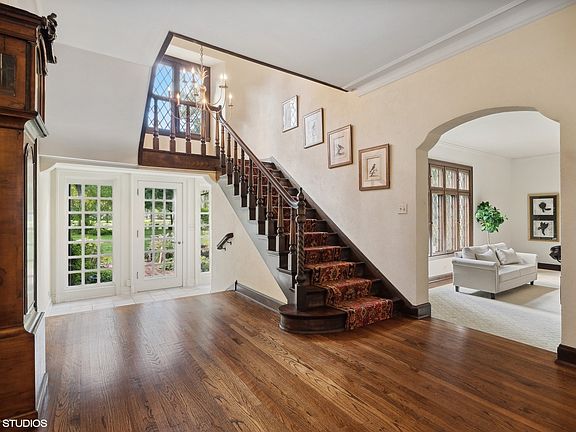First time on market ever! Special renovated classic set on 1 acre, nestled within the coveted landscape of Indian Hill Road overlooking the 5th fairway. A timeless English Tudor, with a major renovation and addition by the current owners (only the 2nd family to own the home) boasts both extraordinary golf course and garden vistas. A lovely sanctuary in the heart of Winnetka, this 4BD, 4.2BA home offers a seamless blend of classic elegance and casual ease. The traditional center entry floor plan welcomes you through a gracious foyer with stunning views to the garden and beyond. The 1st floor offers both the space and comfort essential for everyday living, while also embodying a sense of relaxed sophistication. Spacious sun-lit living room with original leaded windows and custom carved fireplace with an adjacent library/office, plus a formal dining room are perfect spaces for entertaining. The more recent reimagined chef's kitchen (2006) was moved to the rear and features high-end appliances, custom cabinetry, expansive center island and a sunny breakfast room overlooking the back gardens designed by Craig Berman. Beyond the kitchen, a butler's pantry and oversized family room with exceptional millwork, beams and fireplace provides ideal space for casual gatherings and/or unwinding at the end of the day. An attached, oversized 2 car heated garage and mudroom addition add to today's convenient lifestyle. Up the striking front stairway, the current owner uses the entire east wing as an extensive collection of rooms making up the primary suite (including his and her baths, closets and offices). A more traditional use of the space would be as 4 beds and 4 full baths, including an incredible revised primary suite catering to the most discerning expectations. An extra 2nd floor room can create another bedroom suite or be used as an upstairs den or homework room. Very comfortable finished basement allows for extra game and play space! The brick-herringbone backyard patios, breathtaking gardens and expansive grounds allow for fabulous al fresco dining and plenty of outdoor fun. With an inviting ambiance of warmth and tranquility, set on one of the most coveted private roads, this classically refined home harmoniously balances casual ease with tasteful elegance making it an exceptional place to call home. Opportunity to make it your own and opportunity for 3rd floor expansion in attic. This property is not in the flood plain. Please make appointments in ShowingTime.
