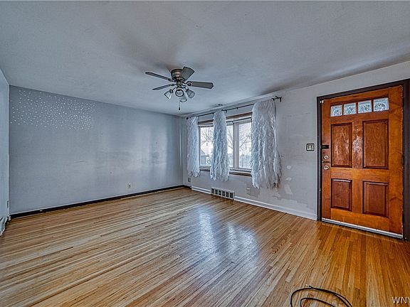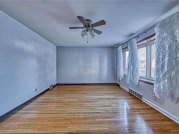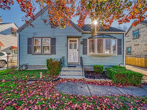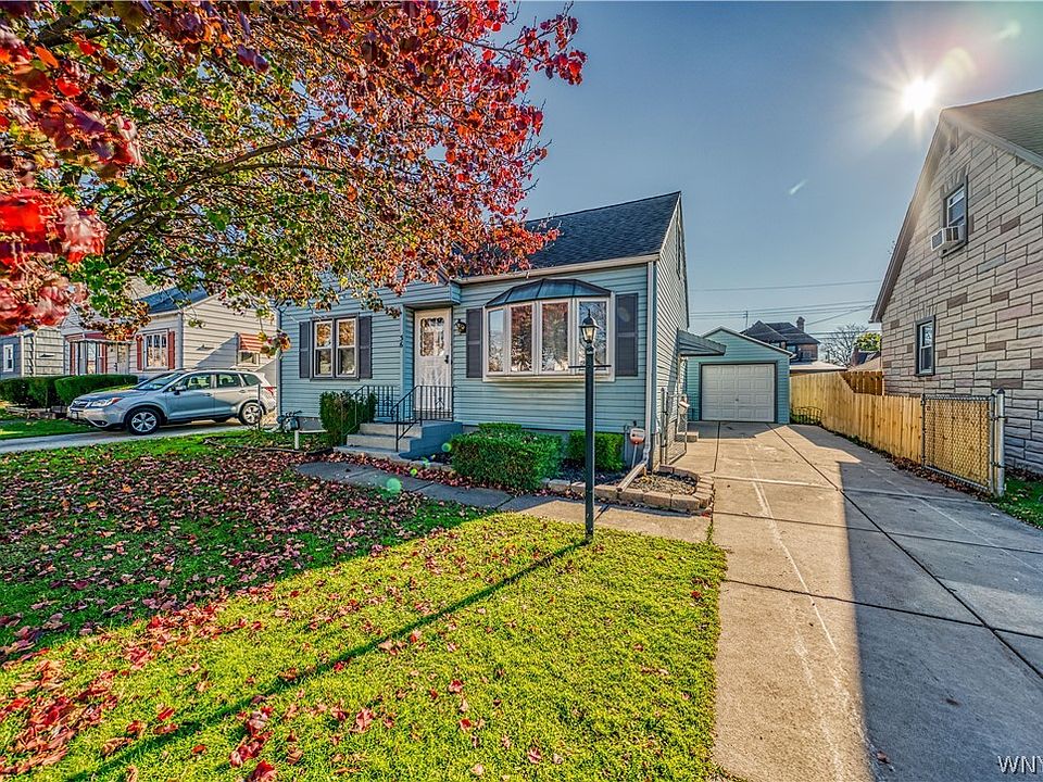 Cheaper than renting! Nicely maintained 2 Bedroom, 1.5 Bath home situated in a sought after Kenmore neighborhood! Front entrance leads to the spacious living room with loads of natural light and original hardwood floors, bright eat-in kitchen with new vinyl floor and appliances are included! Formal dining room (also with original hardwood floors) that could be put back to a 3rd bedroom! Convenient half bath and a large bedroom on first floor. Master bedroom with ceiling fan and fantastic walk-in closet! Awesome full bath with oversized whirlpool tub, standup shower, skylight and plenty of storage. Bonus 15x7 area is perfect for office space. Lighted attic cubby area holds boxes and bins for extra storage. Full and partially finished basement with glass block windows has workshop area, rec room, laundry area, cedar closet and tons of storage! 1.5 car garage with covered patio, concrete driveway for plenty of parking and a fully fenced yard! Useful side entrance from driveway. HWT 2021, Furnace and A/C 2006, architectural shingled roof, replacement windows. Walking distance to stores, restaurants and all conveniences! Minutes to thruway!