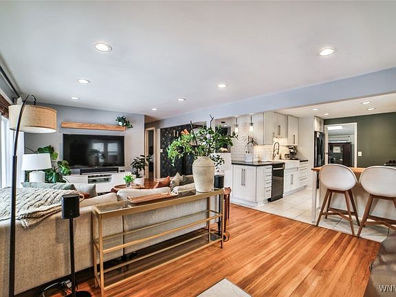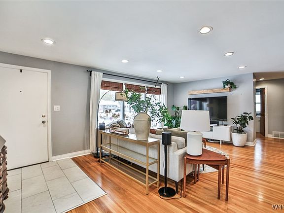 Are you looking for a completely renovated home that you can move into, put away your things and just enjoy? This is it! This beautiful home has been completely updated. The kitchen is timeless with pretty white cabinetry, granite counters, stainless appliances and ceramic tiled flooring and backsplash. The living space is bright and open with an abundance of natural light and gorgeous refinished hardwood floors that extend throughout and into the bedrooms. Enjoy the heated floors in the bathroom on those chilly days - all new fixtures with ceramic flooring and surround here too. Most all of the windows were replaced in 2023, roof and siding on the garage in 2019 plus the garage door and opener in 2018. With updated mechanics as well, this home offers a lot of peace of mind. The yard comes fully fenced with a paver patio and a shed for storage in addition to storage in the attic space with pull down stairs for access. Prefer 3 bedrooms? Please note that this home is a Storybook ranch that was built with a moveable bookcase wall to adapt use as a 2 or a 3 bedroom home. The bookcase wall is in the garage and with a few small modifications, it can be put back in place. All of this with the advantage of a quiet neighborhood and a location that is just minutes to the city and Niagara Falls Blvd with every convenience at hand. This lovely home is a pleasure to visit! Offers, if any, are due on Monday, December 1st by 4 pm.